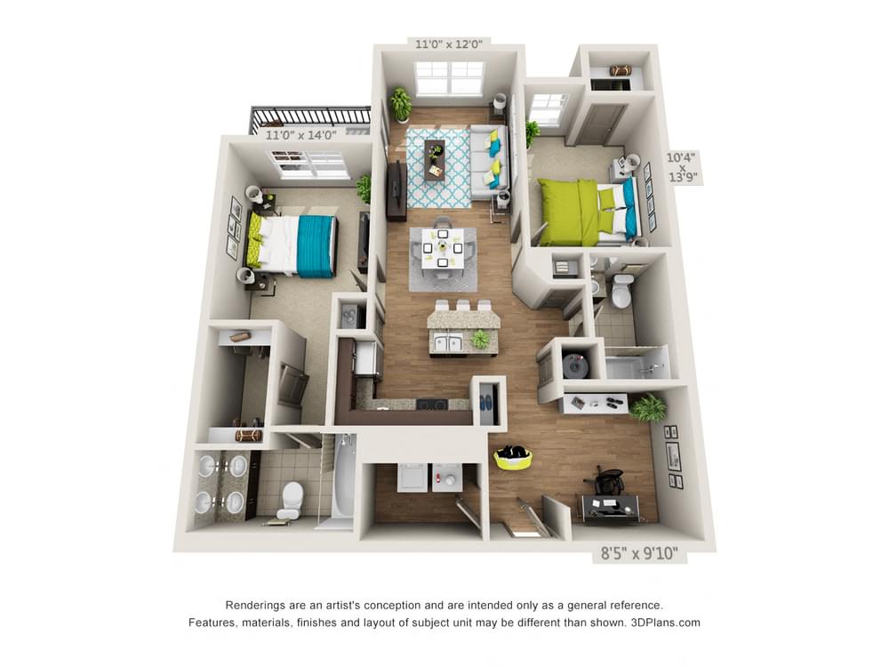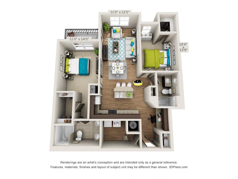 Unit Type2 Bed / 2 BathFloor Area1,200 sq. ft.AvailableTodayStarting at$1,930 / mo
